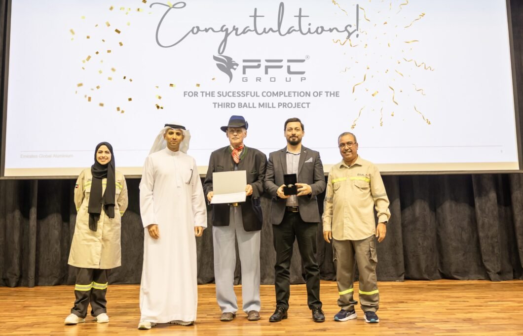 PFC Group has been honored with an Appreciation Award from Emirates Global Aluminium (EGA) for the successful completion and commissioning of the Third Ball Mill Project. This recognition reflects the PFC’s unwavering commitment to engineering excellence, safety, and timely project delivery. The event was marked by the presence by senior executives from both EGA and PFC Group, CEO Mr. Klause Eidelpes, and Managing Director, Mr. Fadi Salameh, proudly received the recognition on behalf of the company, alongside Projects Director Mr. Manas Pradhan, Project Manager Mr. Nizamuddin Shaik, and Safety Manager Mr. Sreerag Soman. This milestone achievement reinforces PFC Group’s dedication to delivering large-scale industrial projects with the highest standards of quality, innovation, and safety.