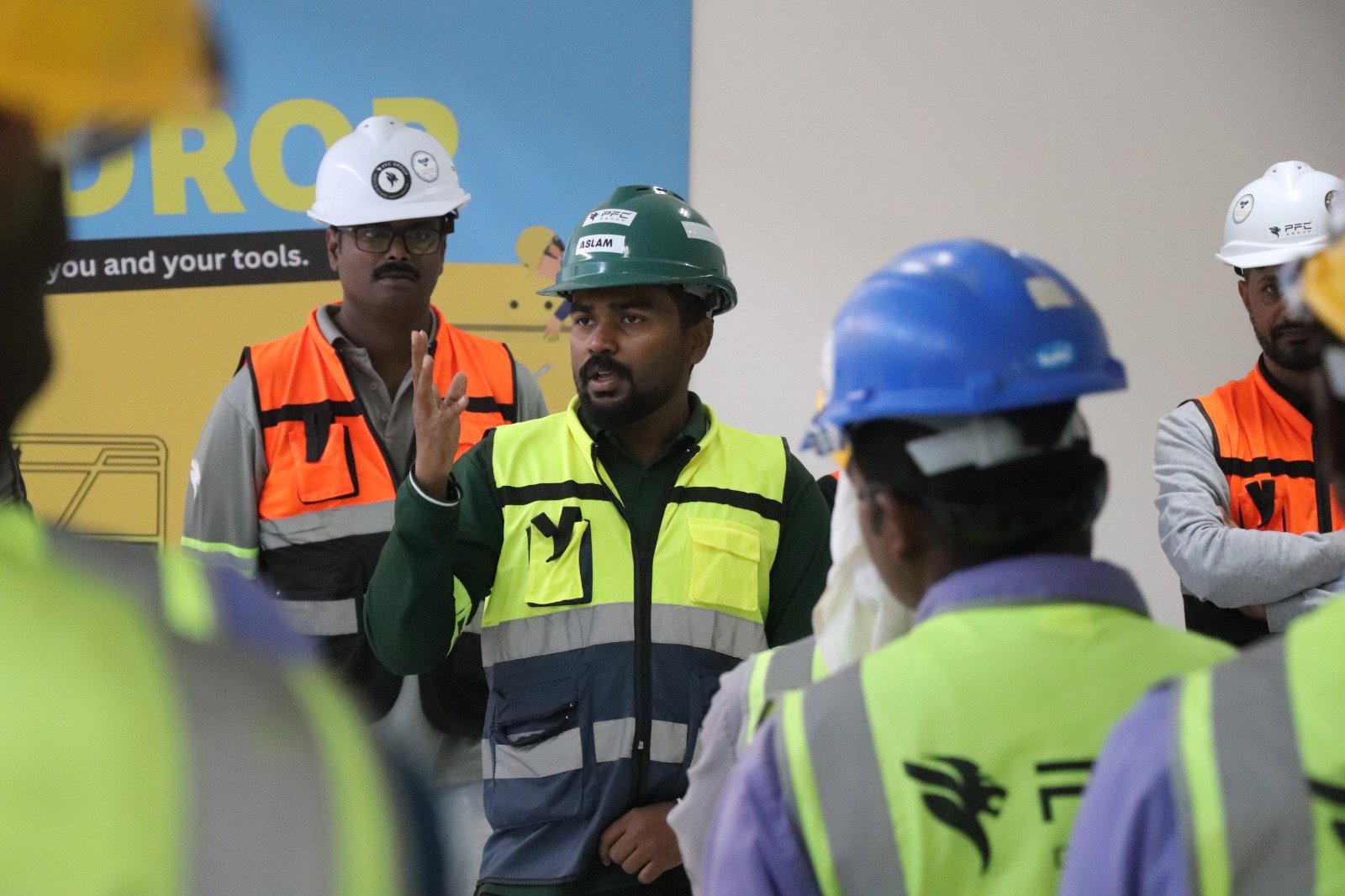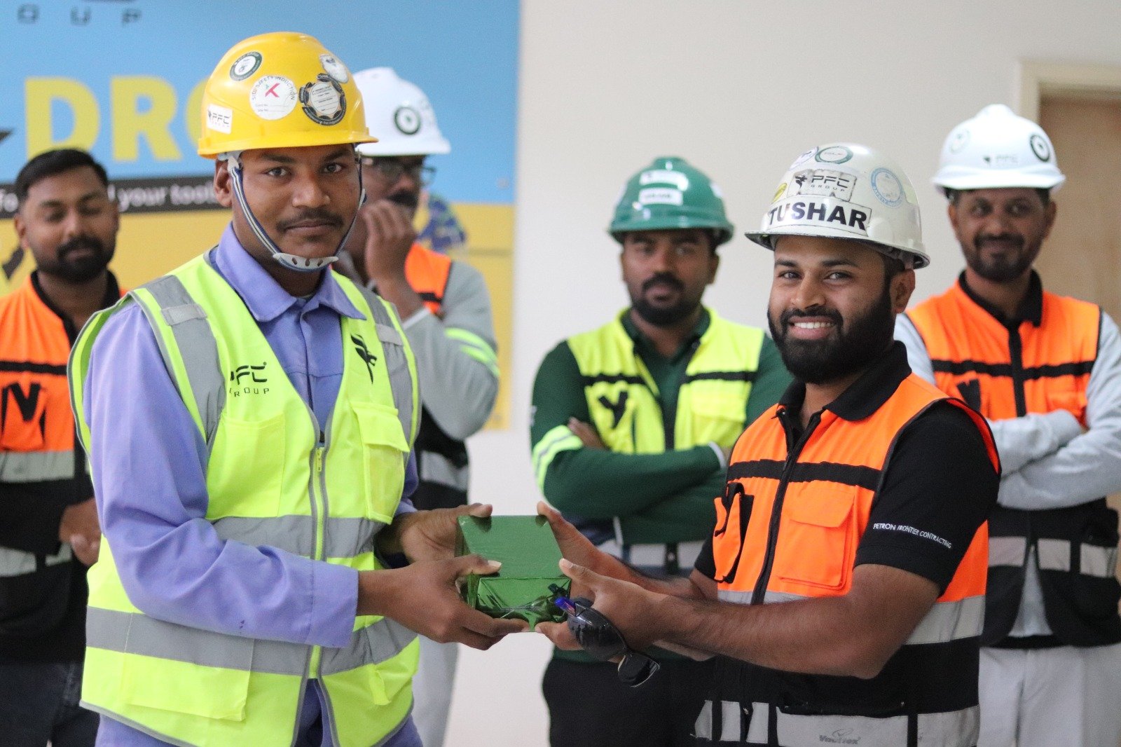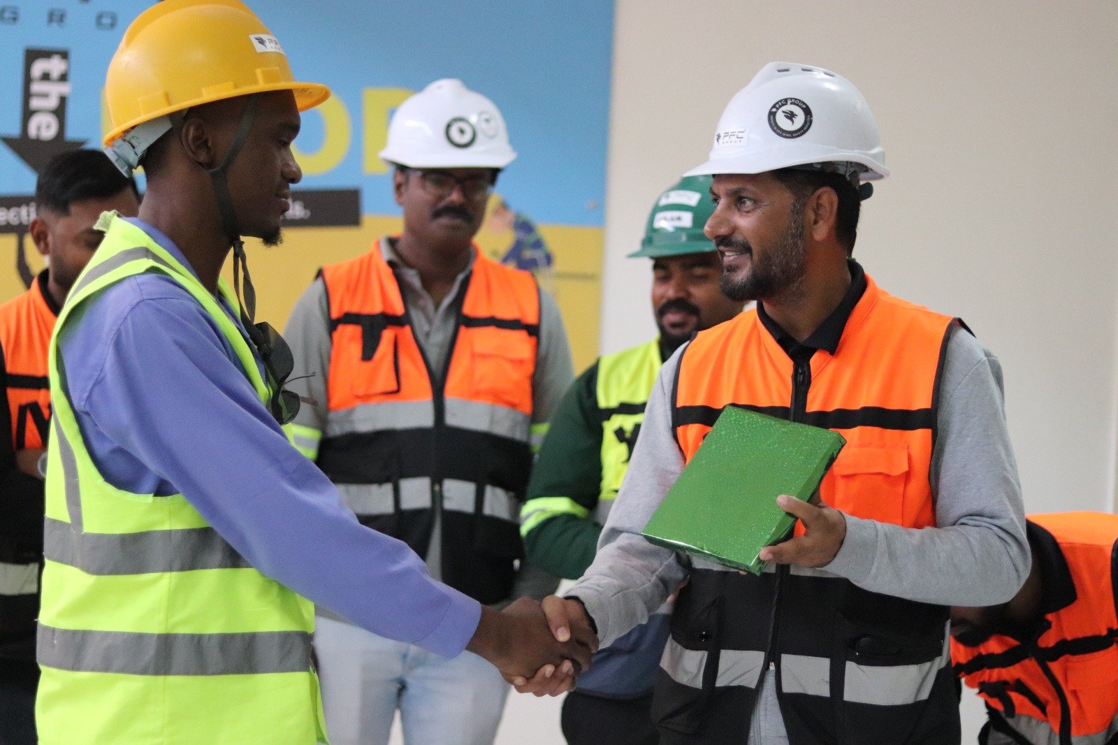 The Stop the Drop HSE Campaign was a comprehensive three-day initiative designed to mitigate dropped-object hazards and enhance workplace safety. The program commenced with a focused Toolbox Talk that defined hazards—such as falling tools and debris—and identified high-risk activities like scaffolding work and lifting operations. Over the course of the campaign, leadership, including PFC HSE Manager Liyon Jose and BCG HSE Manager Ahmed Kamal, facilitated detailed awareness speeches, visual campaign displays, and practical demonstrations of preventive controls like tool lanyards, toe boards, and proper material stacking. The event also featured interactive elements, such as a quiz session with BCG HSE Engineer Fayaz Khan and the presentation of Best Safety Awards to recognize exemplary worker participation. Ultimately, this structured engagement improved workforce compliance and reinforced individual responsibility for maintaining a secure overhead environment.