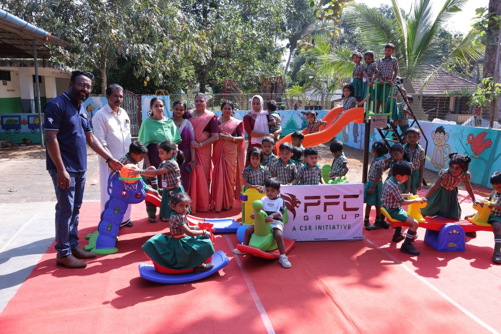 PFC Group, as part of its ongoing Corporate Social Responsibility initiatives, sponsored new playing equipment for Edavoor LPS in Ernakulam, Kerala, India. The initiative aims to provide children with a safe and engaging environment for recreation and physical activity. Mr. Krishnalal, Senior Architectural Designer at PFC Group, represented the company during the handover ceremony. The event was attended by school staff, students, and local community members. Mr. Fadi Falameh, Managing Director of PFC Group, personally blessed the children, emphasizing the importance of play in overall development. The sponsored equipment includes swings, slides, and other recreational structures to encourage outdoor activities. This effort reflects PFC Group’s commitment to supporting education and community well-being. The initiative was well-received, leaving a positive impact on both the students and the local community.